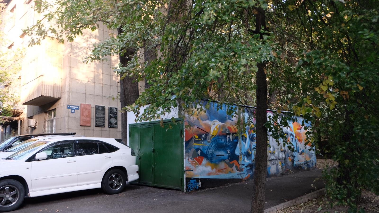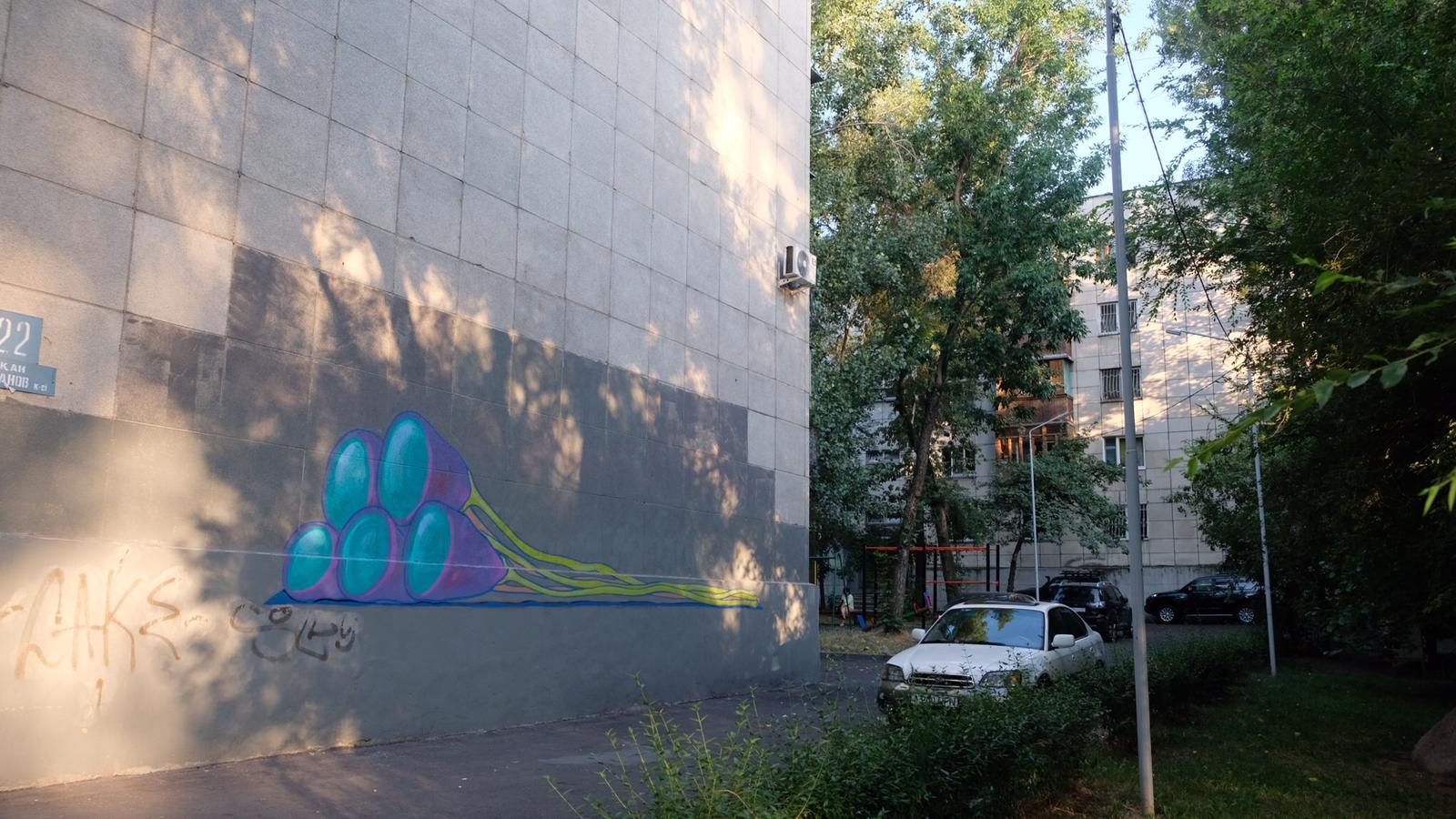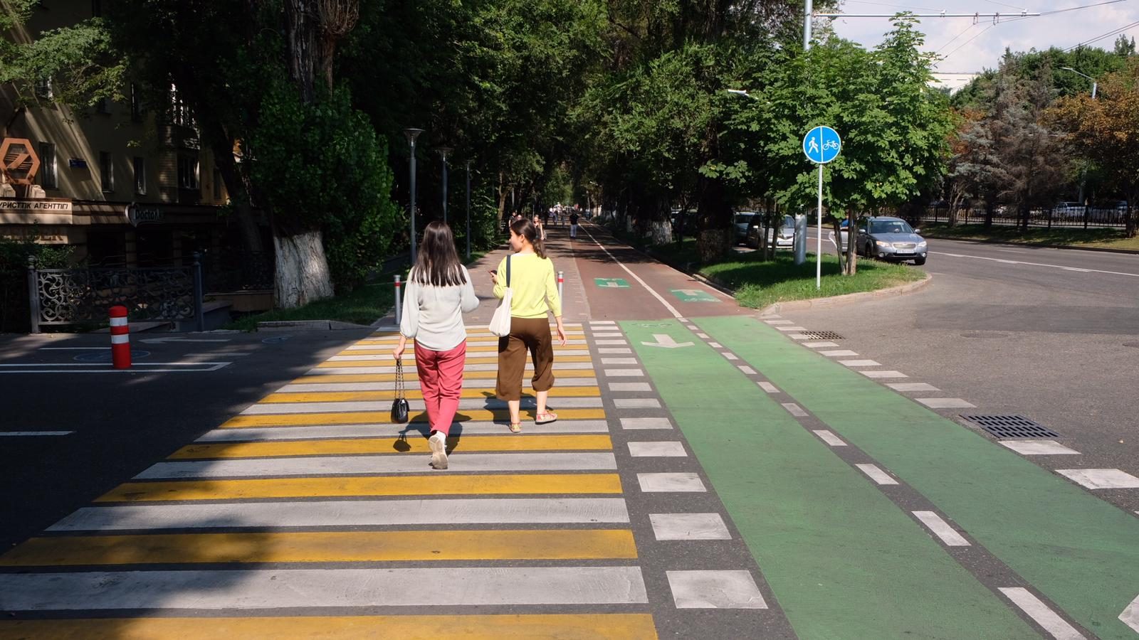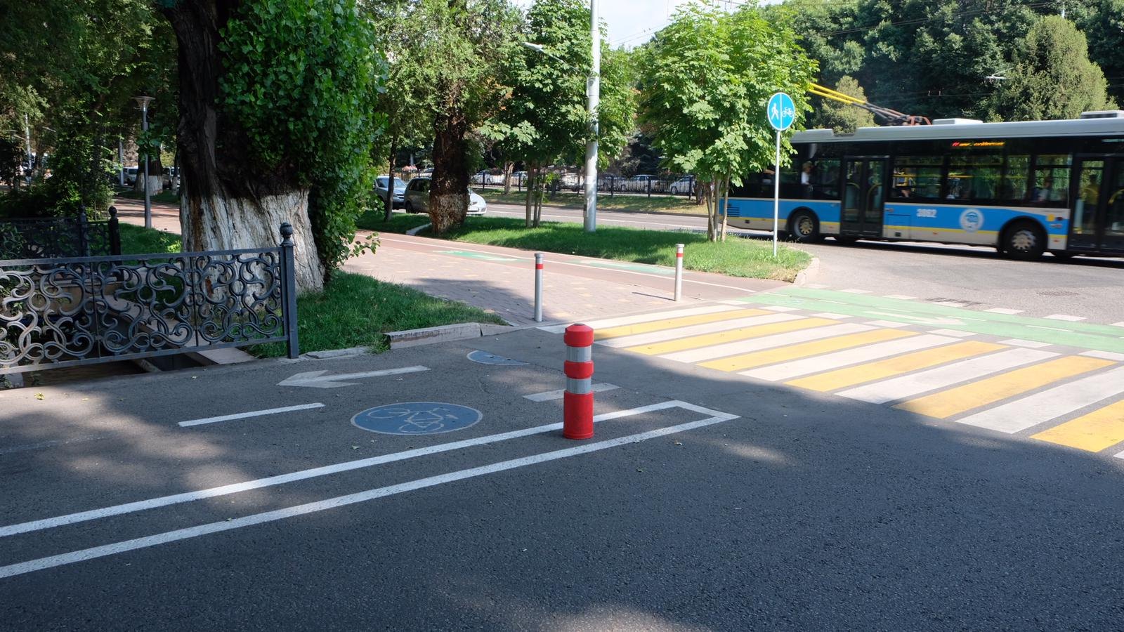 Heute war es 37 Grad. – In Almaty gibt es erfreulich viel Grün, zahlreiche Denkmäler, viel Street Art an Mauern und Hauswänden und teilweise zweispurige Radwege.
