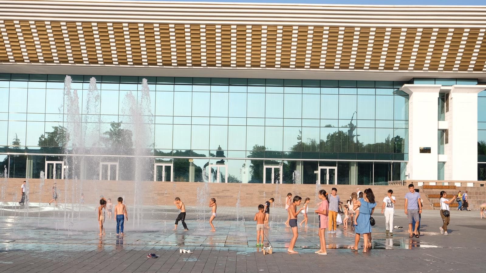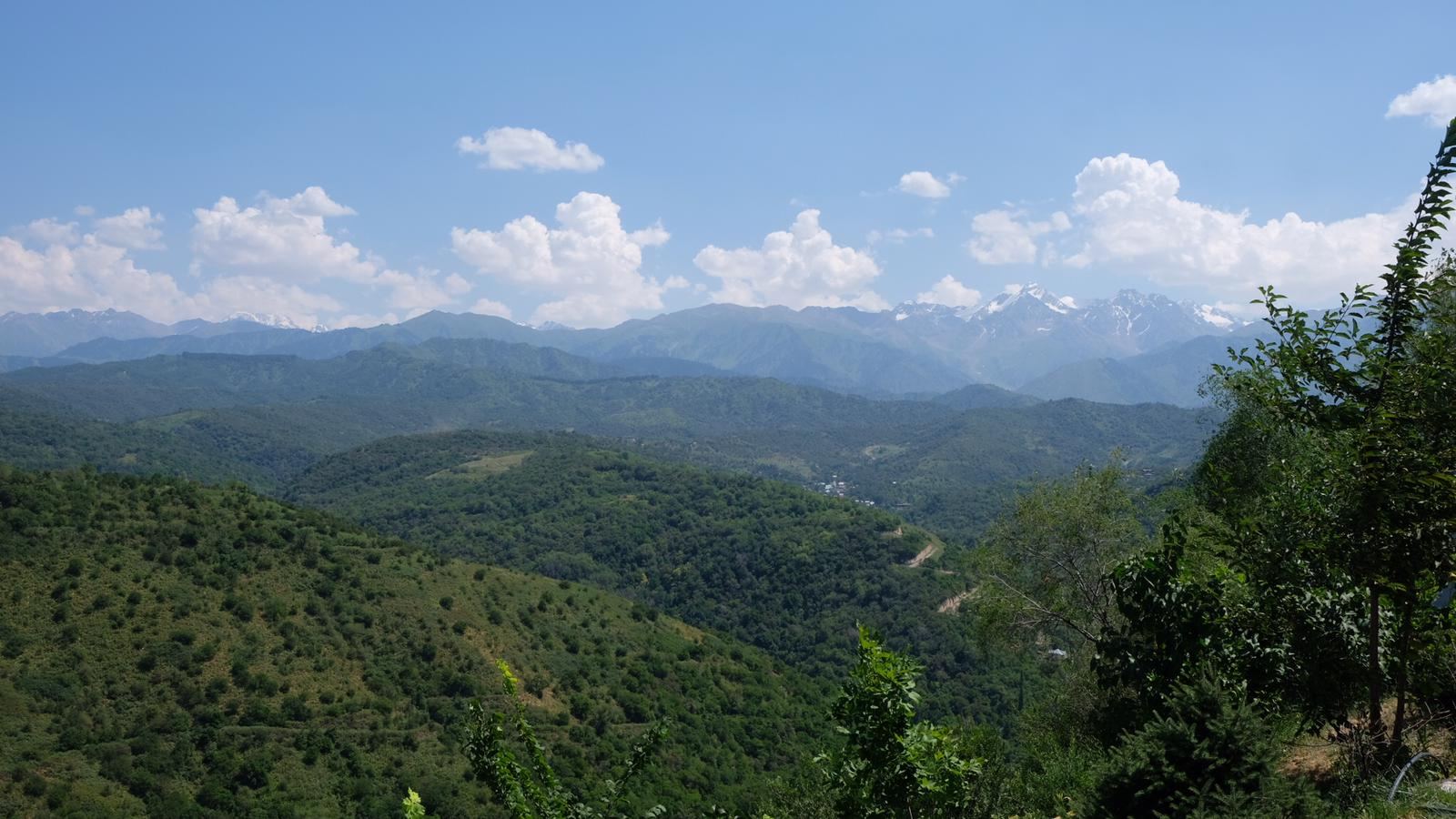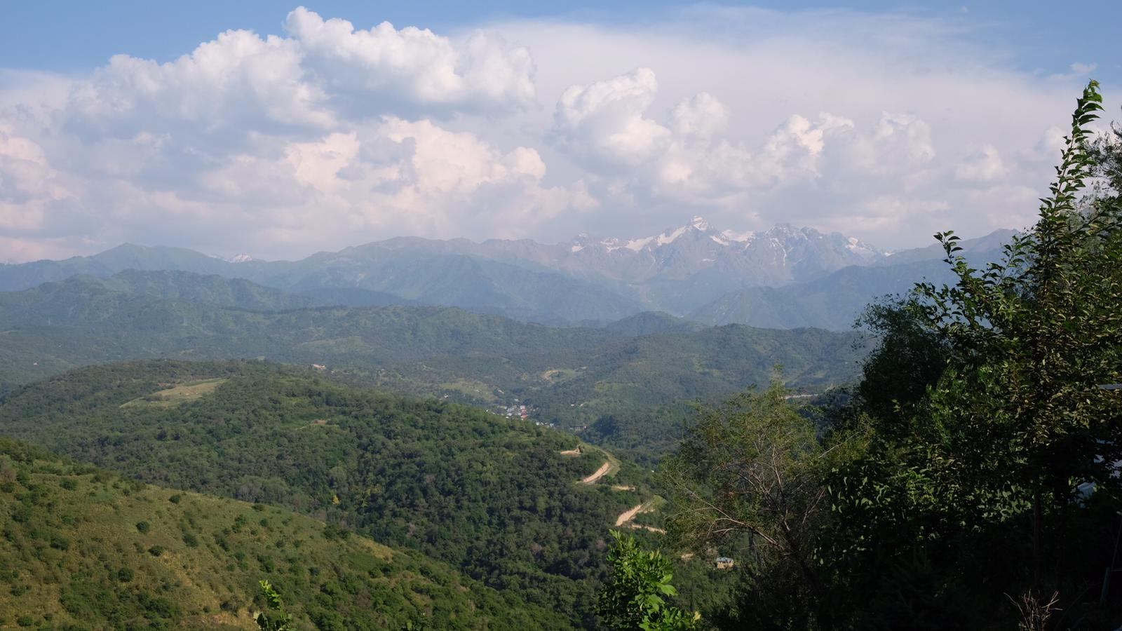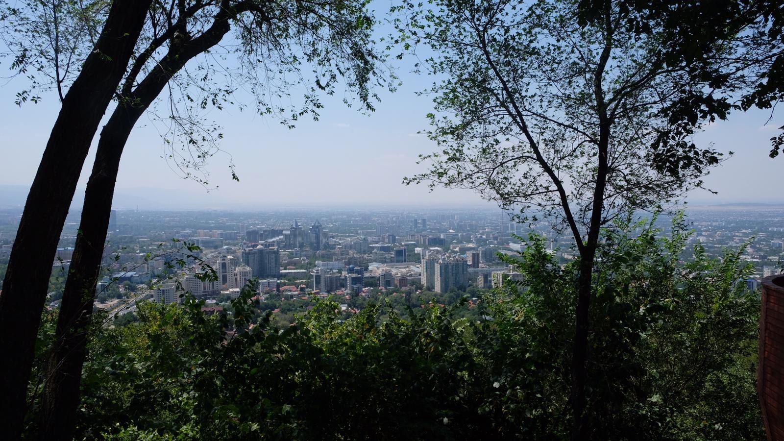 Die Stadt liegt am Fuß des Tian-Shan-Gebirges. Die Gebirgsbäche durchziehen die Stadt und schaffen angenehmes Kleinklima.