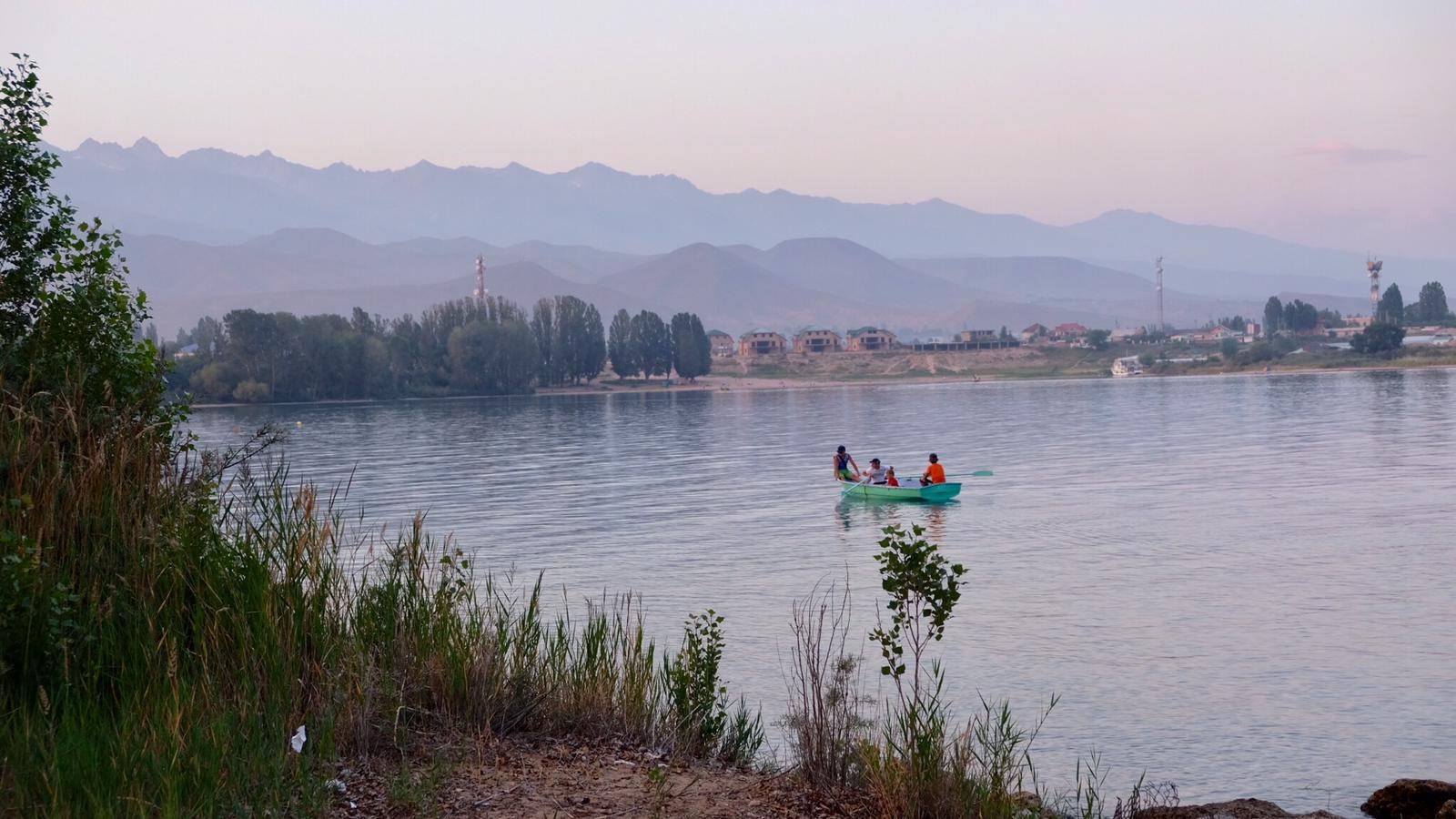 Die Grenze war mal wieder superlocker, jedenfalls für uns. Die Lkw-Schlange war mal wieder kilometerlang. Vorbei am Issyk-Kul gings zu Ermek nach Karakol.
